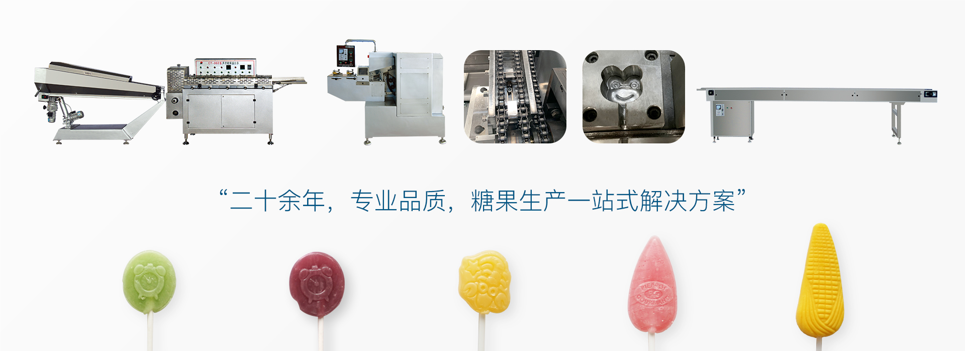 二十多年,專注糖果生產設備。硬糖,奶糖,夾心糖,以及各種形狀的棒糖從熬煮,成型,冷卻,包裝提供一站式解決方案,滿足市面上大多數糖果生產需求。 查看更多